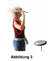 Die Wellenbewegung verläuft nicht nur von oben nach unten, sondern beinhaltet zudem eine Rotationsbewegung des Ellenbogens. Bei der Aufwärtsbewegung des Armes schwingt er kurzzeitig nach außen und beschreibt dabei eine Ellipse. (Abbildung 3)